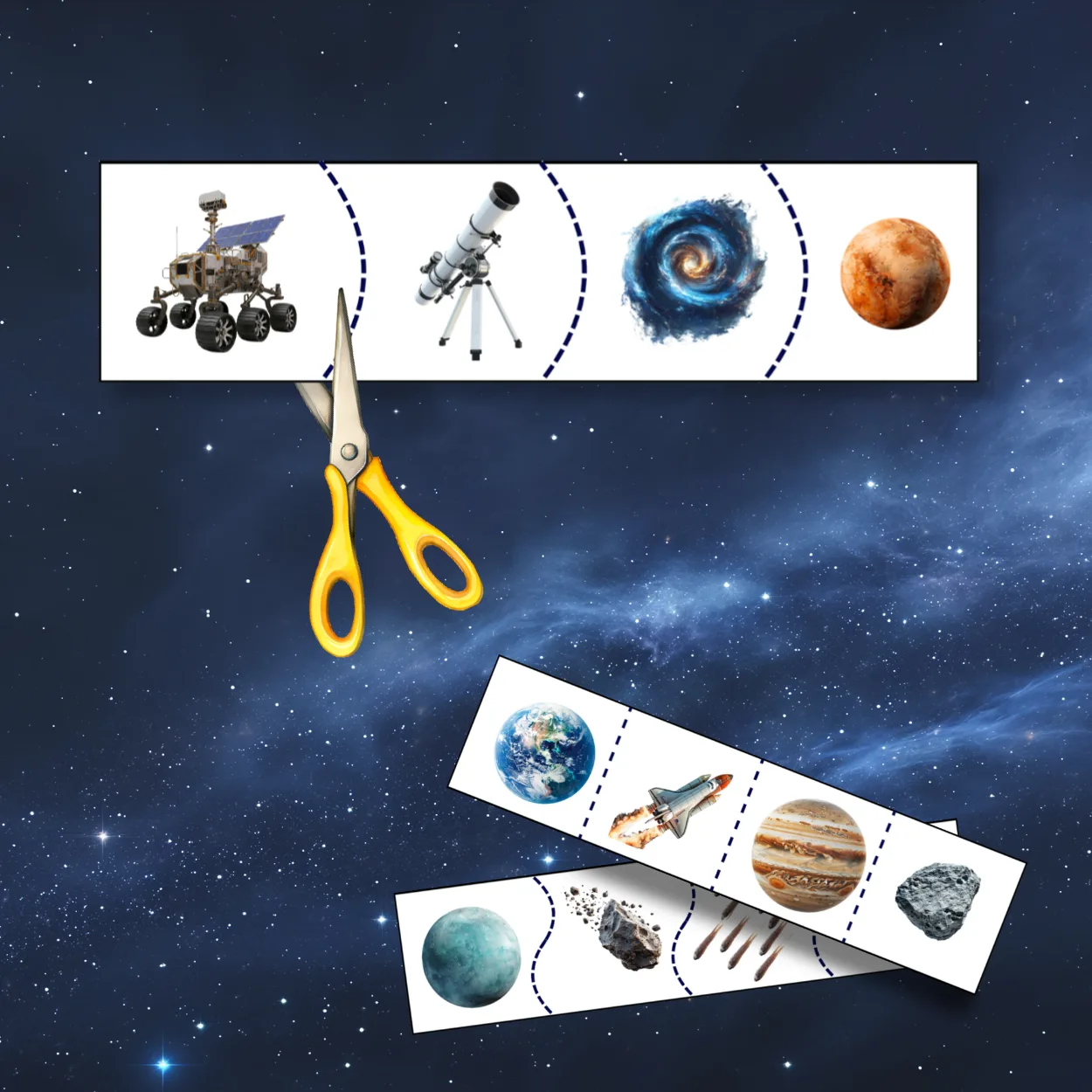 Kosmos wycinanki – Kosmiczne szablony do ćwiczeń z nożyczkami